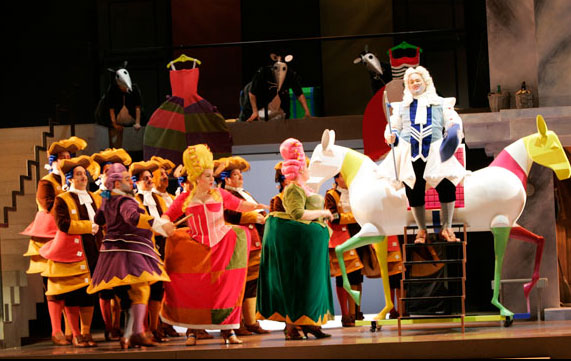 It’s a wonderfully fun production. Very colorful, and it captures the fairy-tale aspect of the piece. It’s not a cerebral experience. It’s very entertaining. When we did this in Toronto, there were kids in the audience 5 years old and up, and they loved it and laughed. While Barber is funny, the people are quite mean. In La Cenerentola the humor is not quite so malicious. I find it a much more charming piece overall, and the ensembles are great. There’s a wonderful ensemble in the second act, in which everyone is terribly confused, and Rossini just uses rolled Rs and percussive Ps to make it musically funny.
