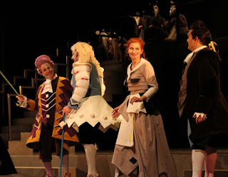 Although musically, Rossini's Cinderella and The Barber of Seville are similar, the humor in Cinderella isn't nearly as anarchic or as juvenile as in The Barber of Seville. Unlike that opera, in this one, the hero and heroine actually get to sing a love duet. There's an adorable meet-cute scene for Cinderella and her prince—he's disguised as a servant because he wants to find a woman who loves him for who himself and not for his money. It's love at first sight, Italian style where it's both super sexy and sweetly innocent. Imagine two young Italians discovering each other ... Rossini casts the prince, Don Ramiro, as a high tenor and Cinderella, a mezzo (technically at the first performance, a contralto), their voices almost overlap.