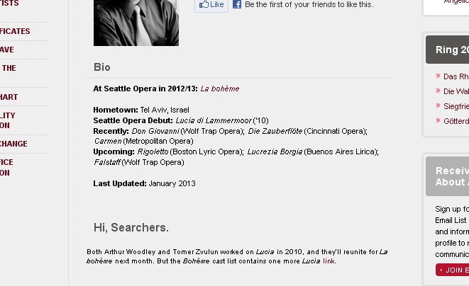 The caption for this image read "blog search: 2012/13 season," which should have led you to this very Seattle Opera Blog, where a search would have yielded these results: